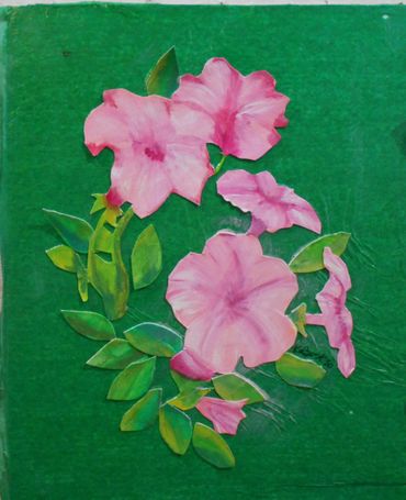 An online gallery of paintings and other fine art works. Works include water-based media on paper and canvas, and paper and mixed media collage. Subject matter ranges from traditional, naturalistic flowers to abstract images and construction.